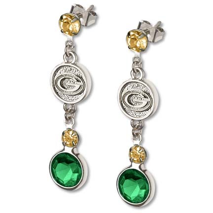 Bring a positive influence to game day by wearing these crystal team dangle earrings! Soft-spoken in design, delicate round crystal stones in multiple sizes representing your teama€ s colors are intricately set within the earring. At the center of this piece lies the Green Bay Packers logo encircled. This piece was subtly designed for casual or business attire. Crystal colors are teama€ s primary and most secondary colors. Crystal colors may vary. Charm sizes are approximately 7mm diameter for the earrings. Charms are simulated rhodium plated alloy. Express your team pride with jewelry from LogoArt®. LogoArt® earrings are available in 14KT and 10KT gold, sterling silver and gold plated sterling silver. The precise detail of your favorite team's logo is captured in expensive metal molds. Items are cast of precious metals and hand finished. All LogoArt® sterling silver earrings are rhodium plated to provide a beautiful lasting finish. Team your earrings up with one of LogoArt®'s matching pendants or stylish LogoArt® watches.